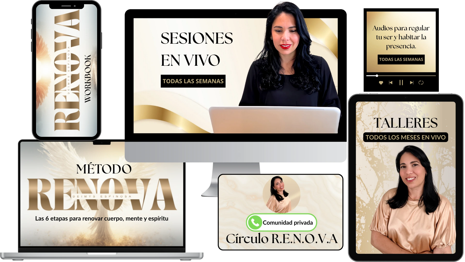 1. Acceso al Método RENOVA completo. Cada semana se habilitará un nuevo módulo que podrás revisar a tu ritmo y las veces que quieras.